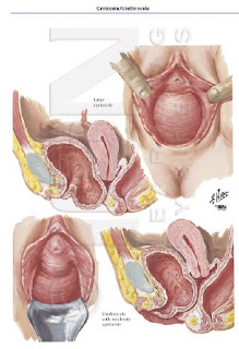 膀胱脫垂:陰道前壁鬆弛,膀胱向陰道內脫出形成如同「疝氣」的現像。患者常會覺得陰道有東西突出或下墜感。常併有頻尿、尿失禁、解尿困難。在沒有症狀時是不需治療。最常見是陰道中央缺損和側壁生缺損,於沒有合併尿失禁時可經由腹部或陰道施行修補;若是有尿失禁,可加作膀胱懸吊。